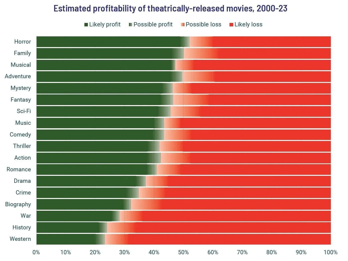 Horror’s box office success: While film is a high risk investment with no guarantee of success, horror is the most likely profitable genre.